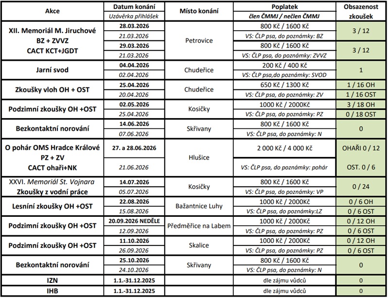 ZKOUŠKY PSŮ V ROCE 2026