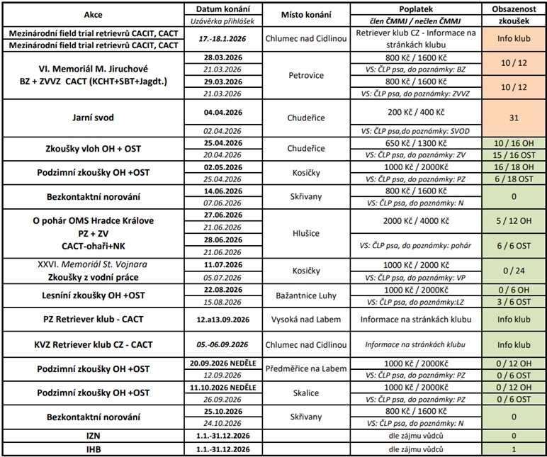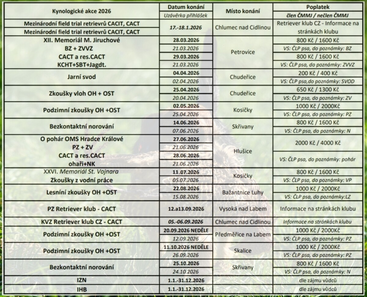 ZKOUŠKY PSŮ V ROCE 2026